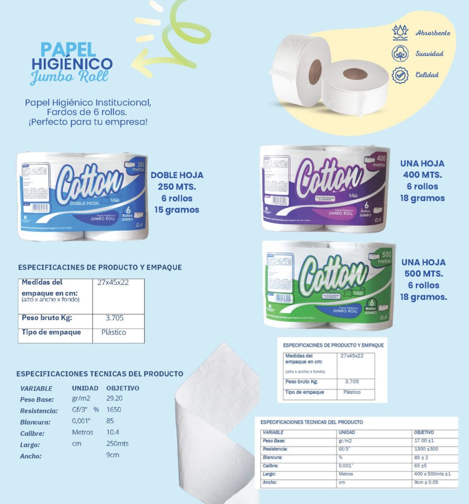 Nuestra línea de papel higiénico y papel toalla está diseñada para ofrecer suavidad, resistencia y durabilidad, asegurando que cada uso sea una experiencia agradable y confiable.